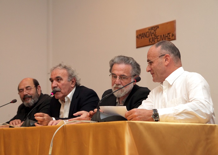 Για το βιβλίο μίλησαν ο καθηγητής του Παν/μίου Κρήτης Γιώργος Νικολακάκης, ο ερευνητής - συνεργάτης του Ιστορικού Μουσείου Κρήτης Κωστής Μαμαλάκης, και ο συγγραφέας, ενώ αποσπάσματα διάβασαν η Γεωργία Καρβουνάκη και η Έφη Ψιλάκη. Συντονιστής ήταν ο Ηρακλής Πυργιανάκης.