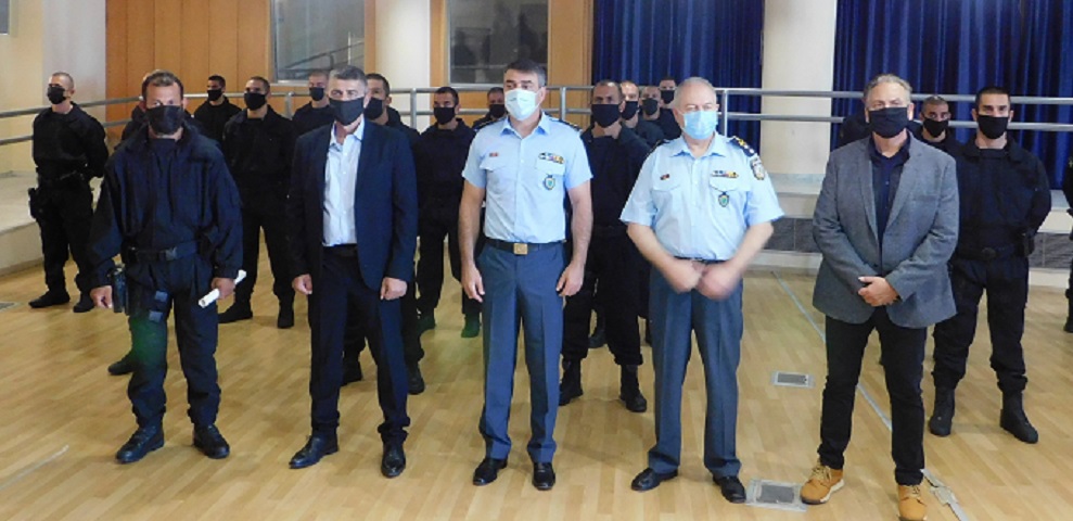 Τα πιστοποιητικά σπουδών επέδωσαν ο Γενικός Περιφερειακός Αστυνομικός Διευθυντής Κρήτης, Υποστράτηγος Αντώνιος Ρουτζάκης και ο Διευθυντής της Διεύθυνσης Ειδικών Αστυνομικών Δυνάμεων, Υποστράτηγος Γεώργιος Παππάς.