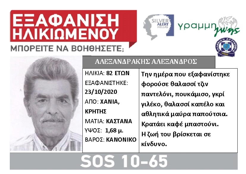 Δείτε παρακάτω στοιχεία για τον 82χρονο που αναζητείται: