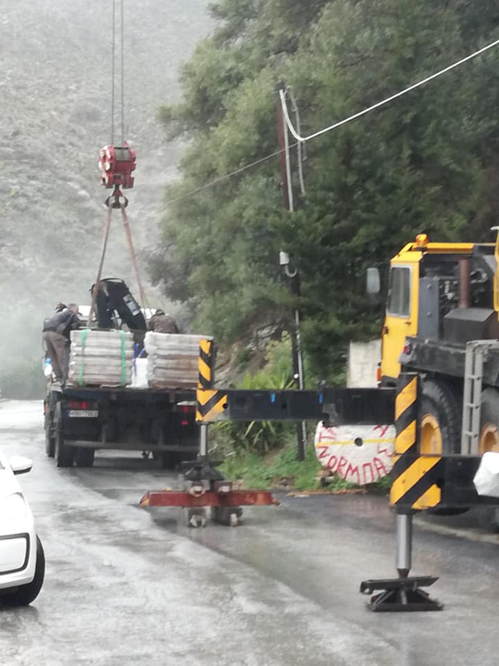 “Τα Σφακιά έδειξαν για ακόμα μια φορά την δύναμη τους! Ο γερανος που μας εξασφάλισε δωρεάν ο Δήμος Σφακίων ανεβάζει ολα τα οικοδομικά υλικά και ξυλιές που όλοι εσείς συμβάλλετε με την συμμετοχή σας στην κοπή πίτας μας να αγοραστούν, για την ανοικοδόμηση της οικίας που κάηκε τον περασμένο Δεκέμβριο στην επαρχίας μας! Και δεν τελειώσαμε ακόμα!
