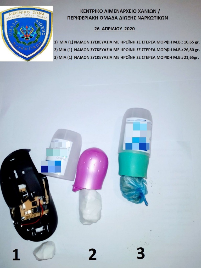 Στον εντοπισμό 59,1 gr ηρωίνης σε στέρεη μορφή και στη σύλληψη μίας 68χρονης Ελληνίδας καθώς και ενός 32χρονου αλλοδαπού προχώρησαν το πρωί της Δευτέρας στελέχη της Περιφερειακής Ομάδας Δίωξης Ναρκωτικών του Κεντρικού Λιμεναρχείου Χανίων.