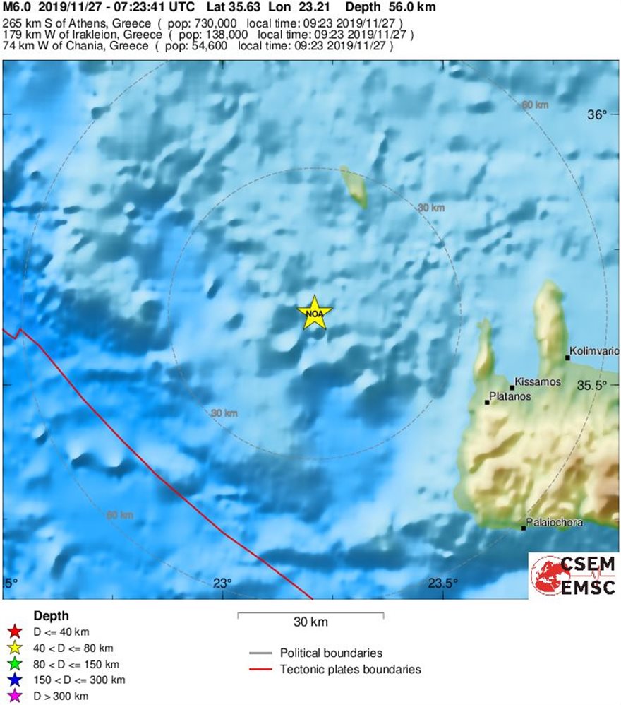Η πρώτη εκτίμηση μιλά για εστιακό βάθος 56χλμ.