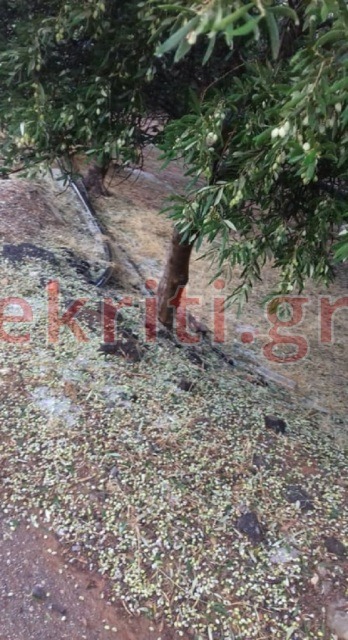 Μεγάλες καταστροφές καταγράφονται στα βόρεια παράλια του Ηρακλείου, καθώς η χαλαζόπτωση έριξε τις ελιές από τα δέντρα, λίγο πριν την ελαιοσυλλογή.