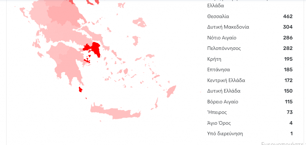 Μία ανάσα πριν φτάσουν τα 200 είναι ο αριθμός των επιβεβαιωμένων κρουσμάτων κορωνοϊού στην Κρήτη από την αρχή της πανδημίας, όπως προκύπτει από τον επίσημο χάρτη του ΕΟΔΥ, κατά την ημερήσια επισκόπηση για σήμερα, Τρίτη 25 Αυγούστου.