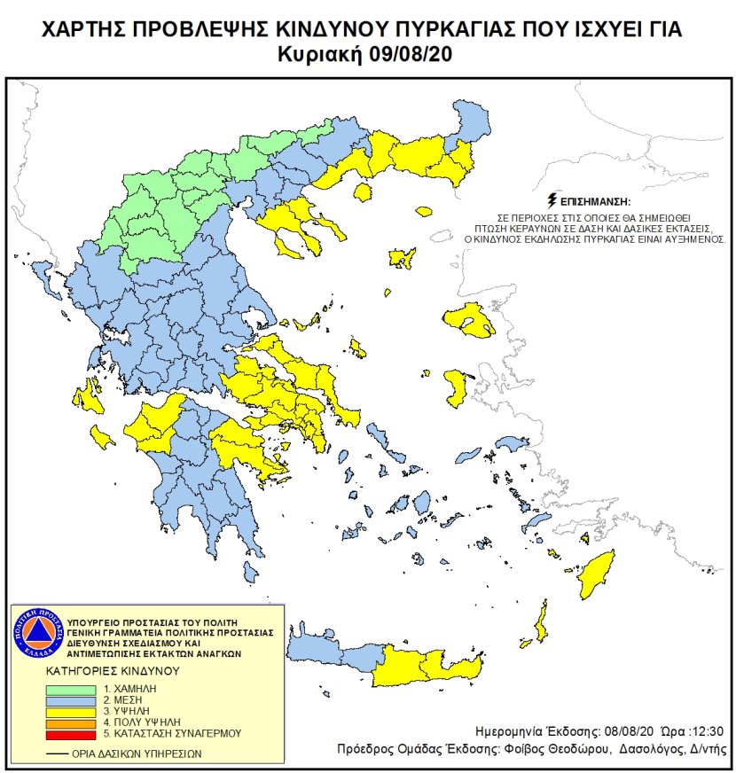Υψηλός θα είναι ο κίνδυνος πυρκαγιάς την Κυριακή 9/8, σε Ηράκλειο και Λασίθι, σύμφωνα με τη Γενική Γραμματεία Πολιτικής Προστασίας.