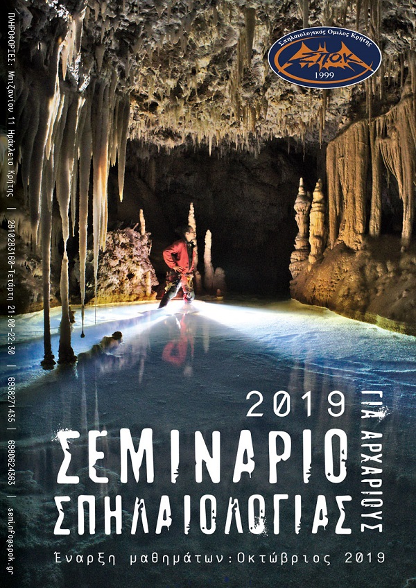 Ο Σπηλαιολογικός Όμιλος Κρήτης (ΣΠ.Ο.Κ.) διοργανώνει για 19η χρονιά σεμινάρια σπηλαιολογίας αρχαρίων από 2/10 έως 29/11/2019.