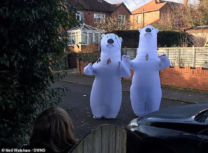 Αφού έκαναν λίγη έρευνα, η οικογένεια βρήκε έναν τρόπο που θα μπορούσαν να έχουν ασφαλή επαφή, σύμφωνα πάντα με τις οδηγίες του NHS. Οι Γουόλσοου, παρήγγειλαν στο ζευγάρι δύο φουσκωτά κοστούμια πολικές αρκούδες. «Η σκέψη των δύο γονέων μου να φορούν ένα τεράστιο κοστούμι πολικής αρκούδας, ήταν ξεκαρδιστική! Αλλά το να τους δω να μπορούν να αγκαλιάσουν τα παιδιά για πρώτη φορά από τον Μάρτιο, ήταν απίστευτο. Ήταν πραγματικά τα καλύτερα πέντε λεπτά του έτους», είπε ο Νιλ.