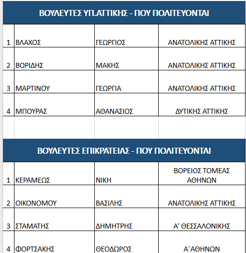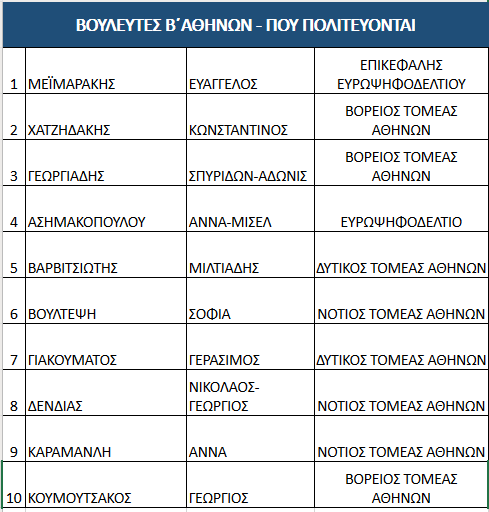 Στην Ανατολική Αττική θα πολιτευθούν οι Μάκης Βορίδης, Γιώργος Βλάχος και Γεωργία Μαρτίνου καθώς επίσης και ο Βασίλης Οικονόμου.
