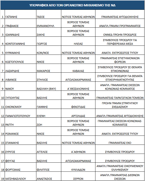 Δείτε τη λίστα με τους υποψήφιους βουλευτές της ΝΔ